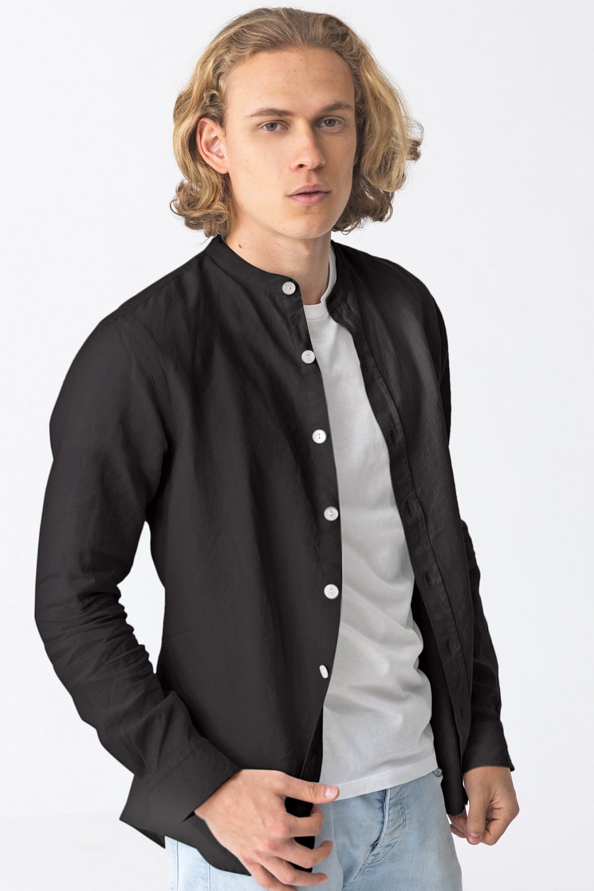 Swatch for Chemise en lin col mao “Natanael” Encre Noire