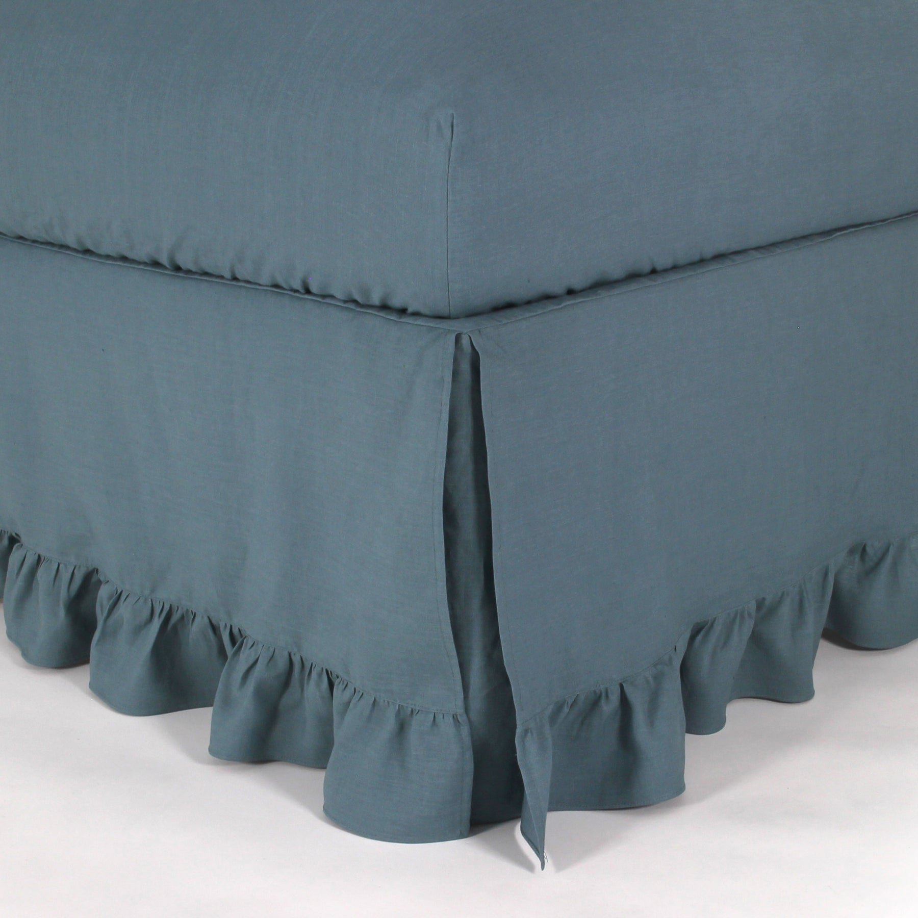Capa sommier em linho com folhos azul francês