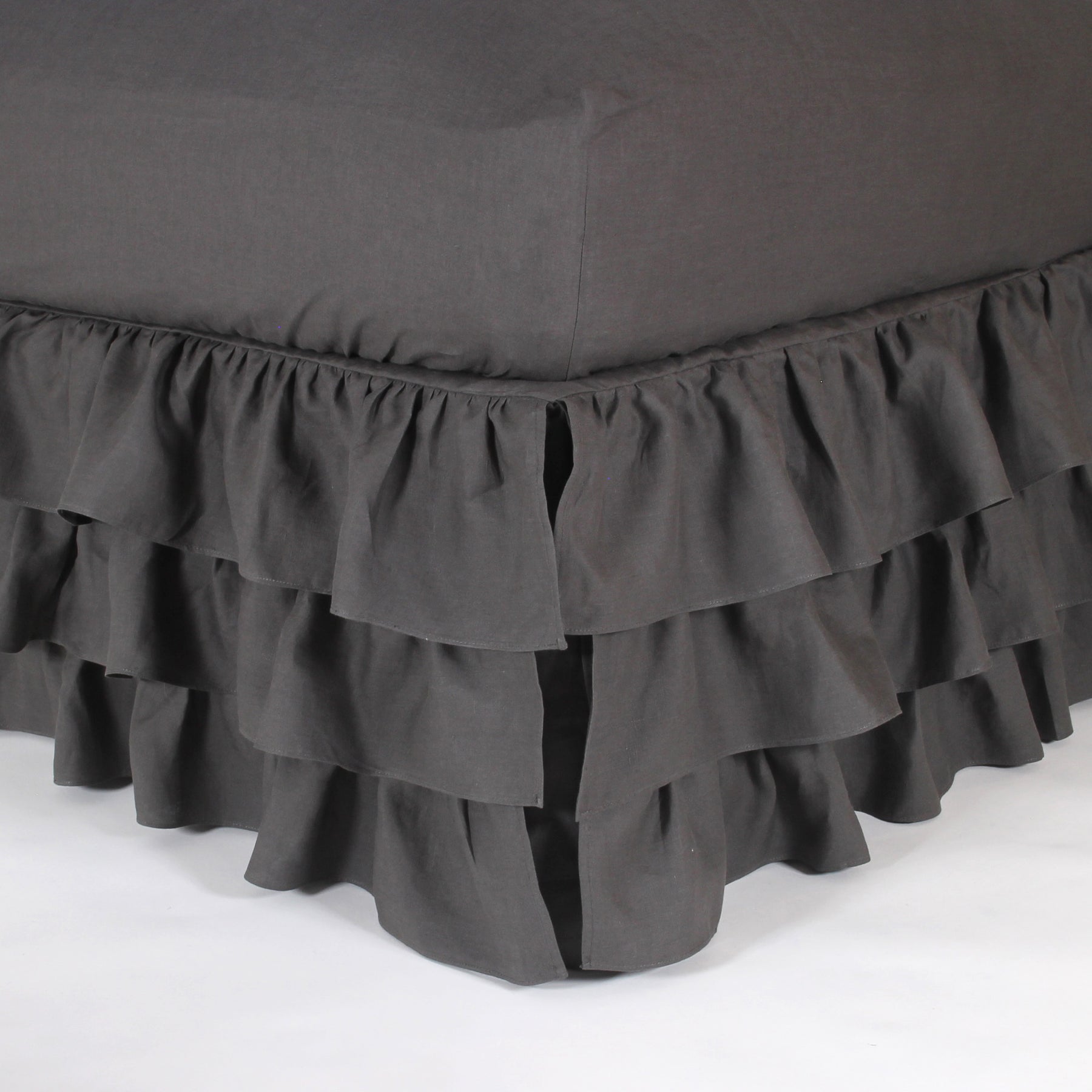 Capa Sommier em Linho com Folhos Cascata, Cinza Chumbo