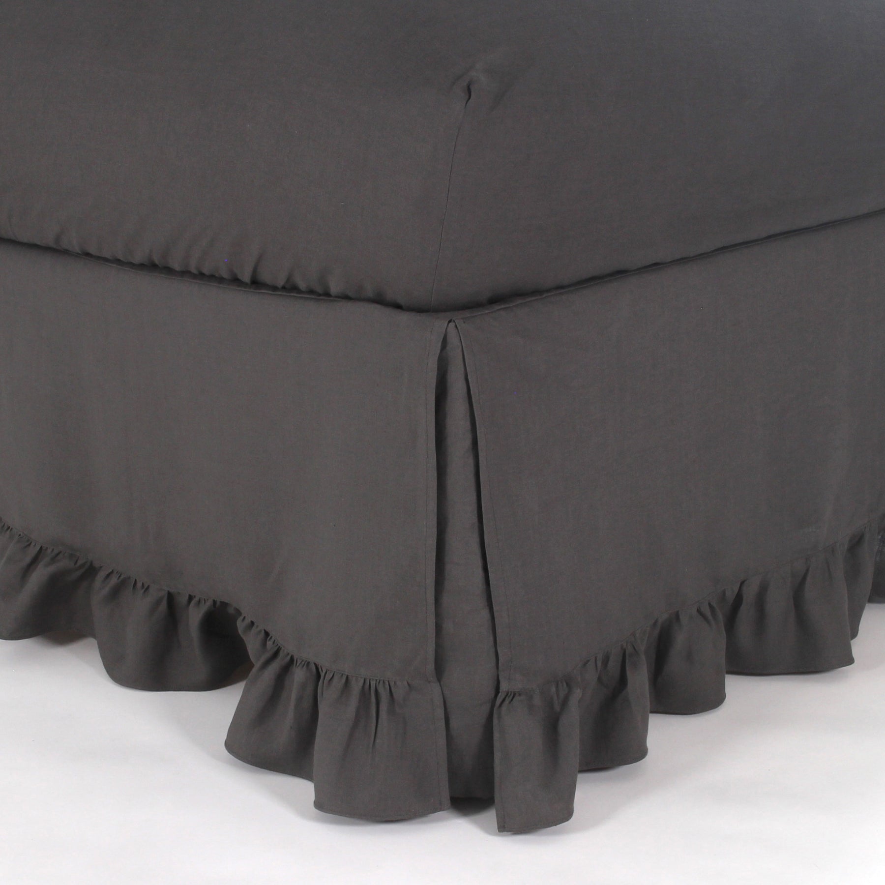 Capa de sommier com folhos em linho cinza chumbo