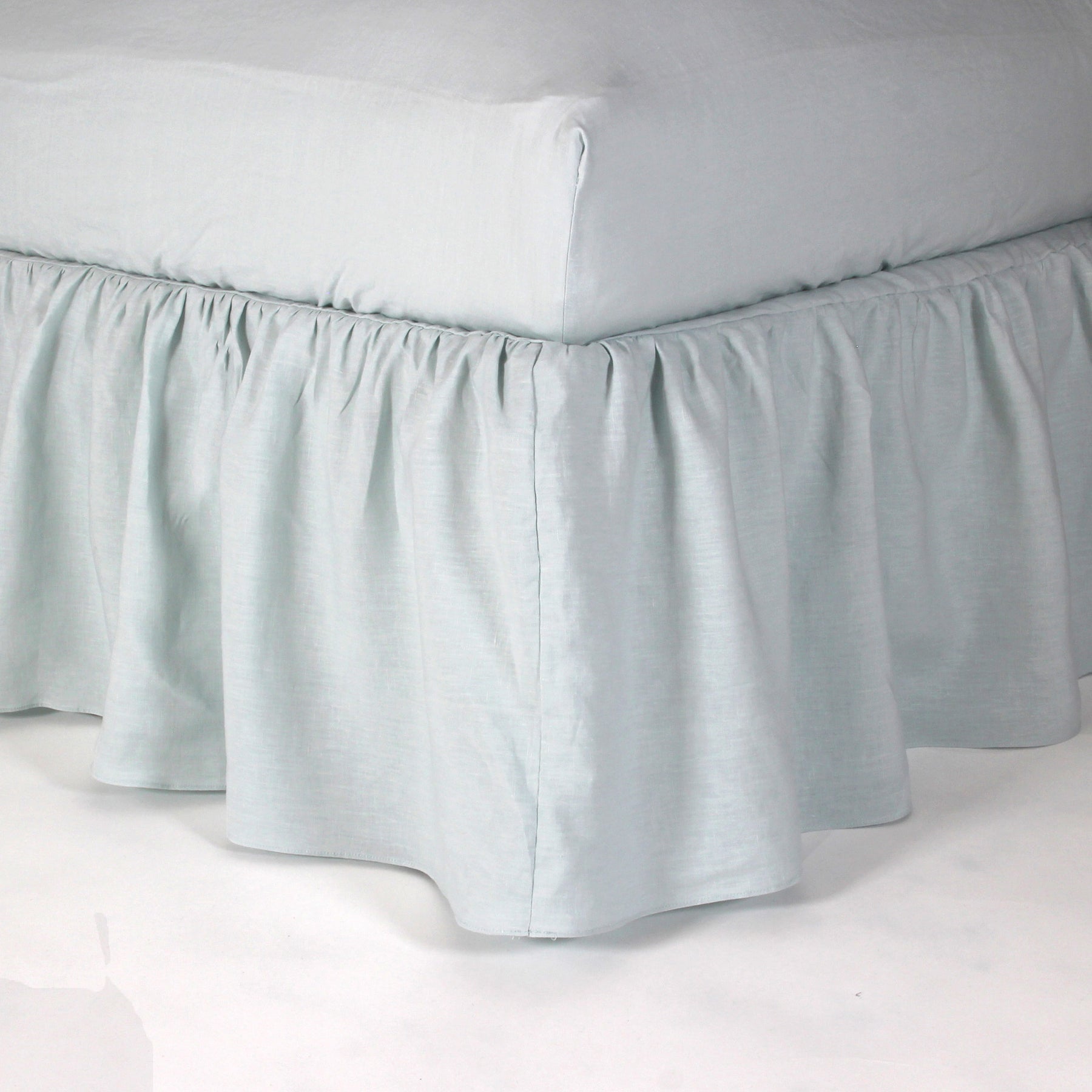 Capa de sommier com folhos longos em linho azul glaciar