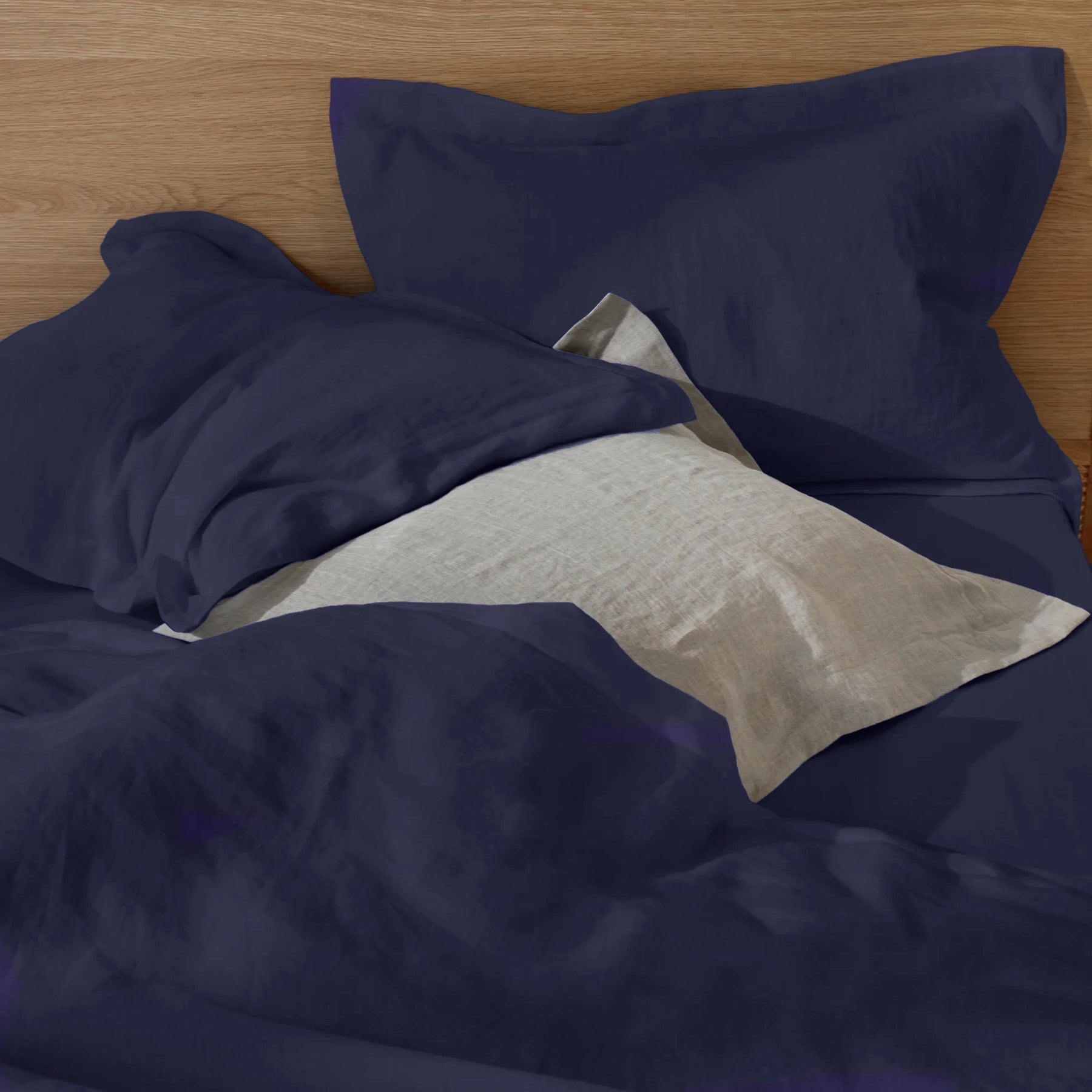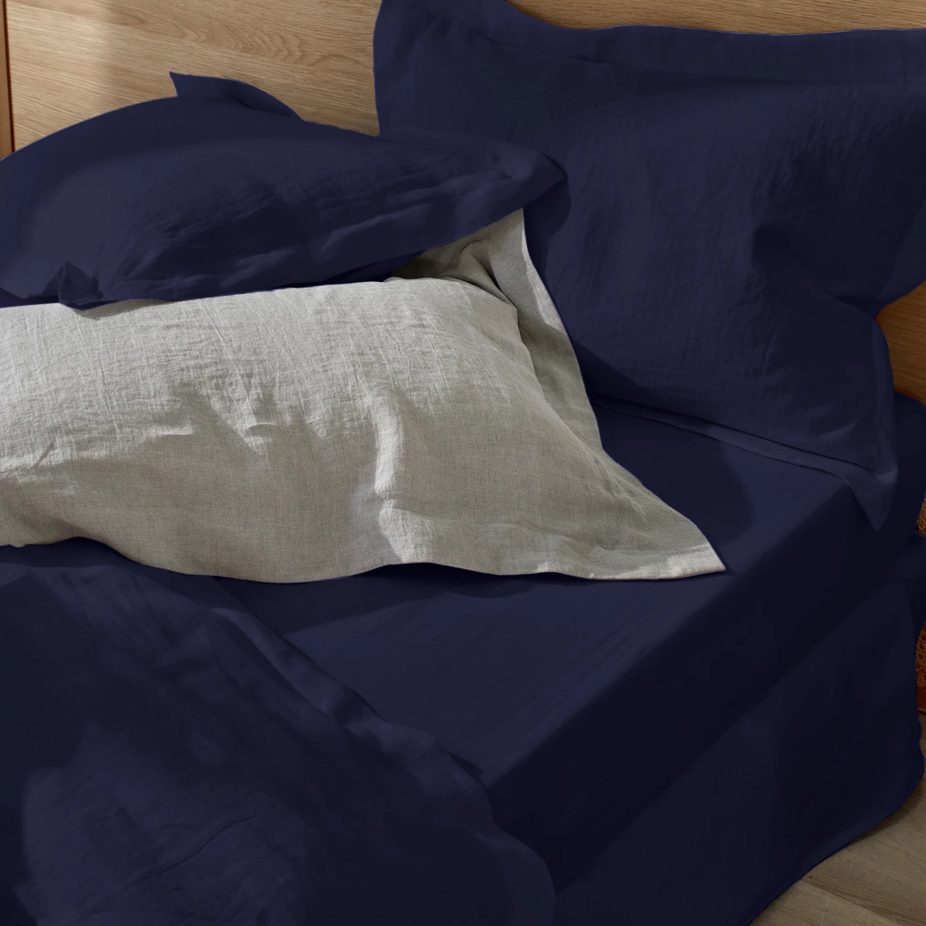 Fronhas em linho com folhos lisos (lote de 2) Azul noite