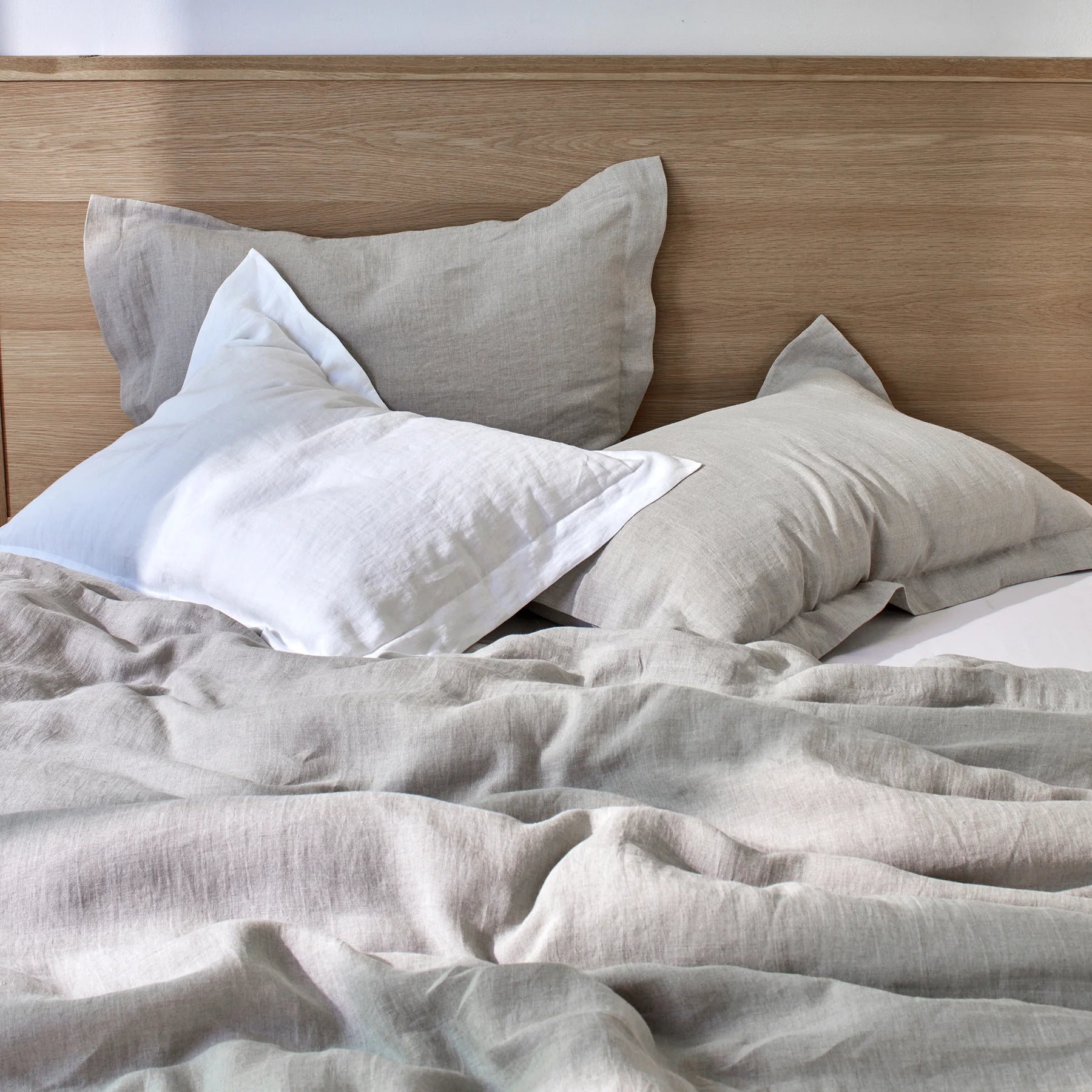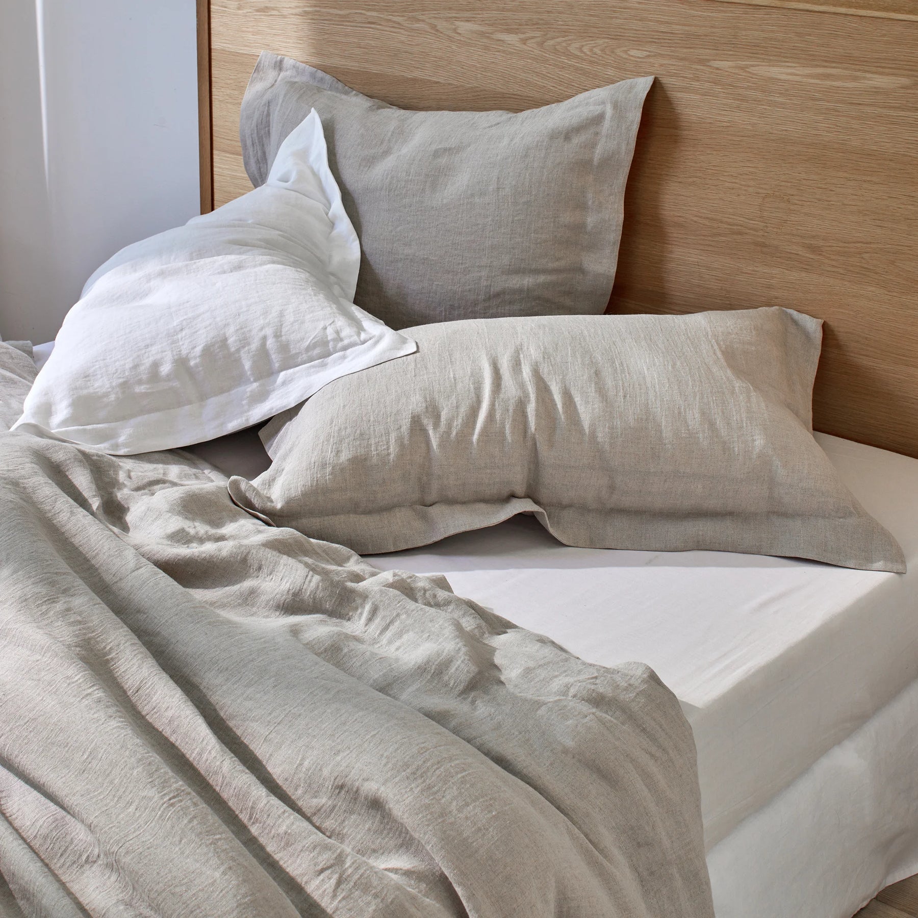 Fronhas em linho com folhos lisos (lote de 2) Bege natural