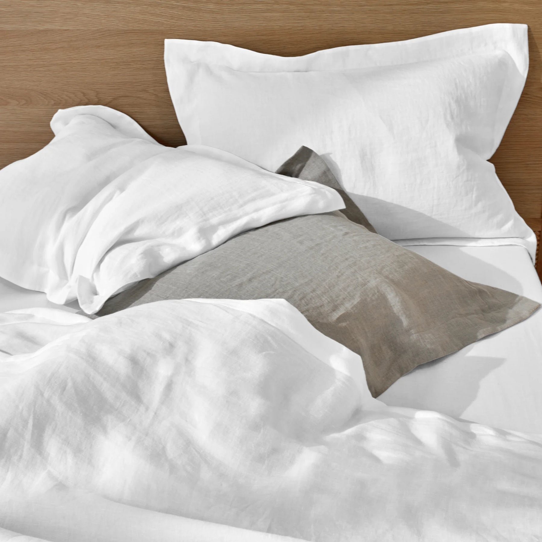 Fronhas em linho com folhos lisos (lote de 2) Branco