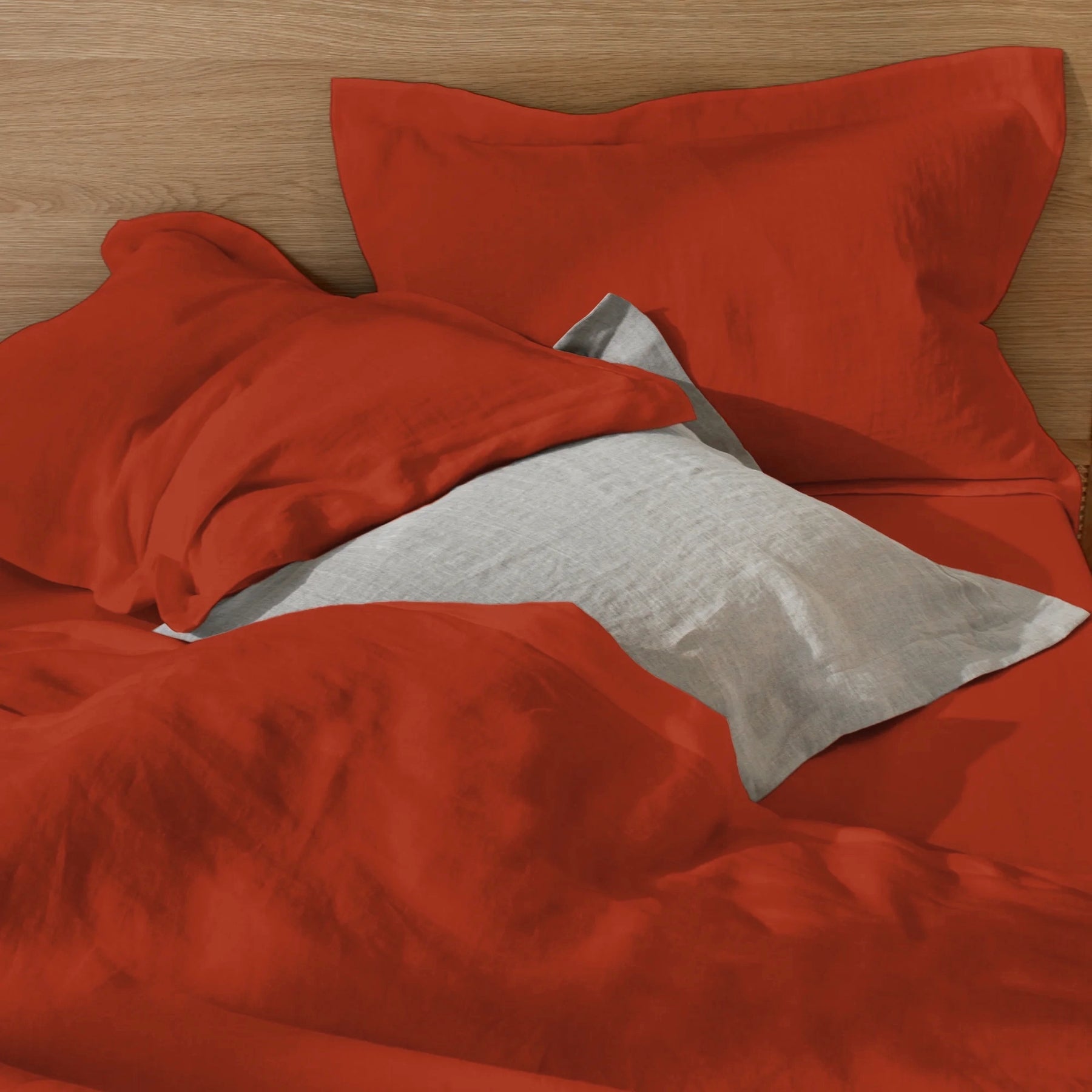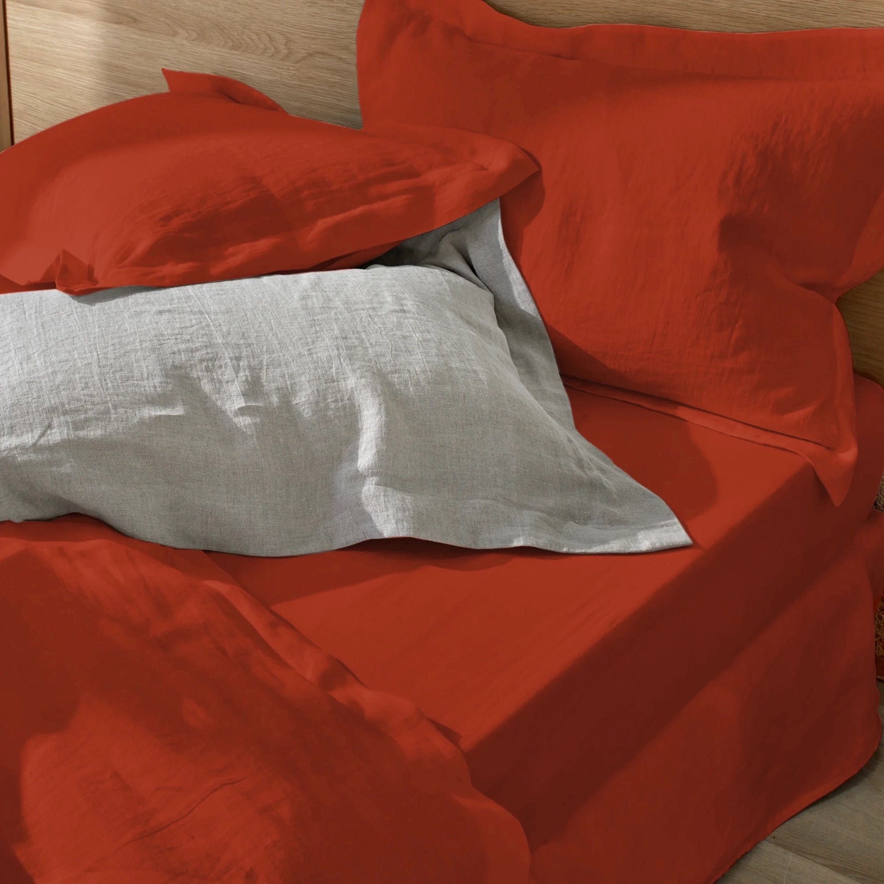 Fronhas em linho com folhos lisos (lote de 2) Coral