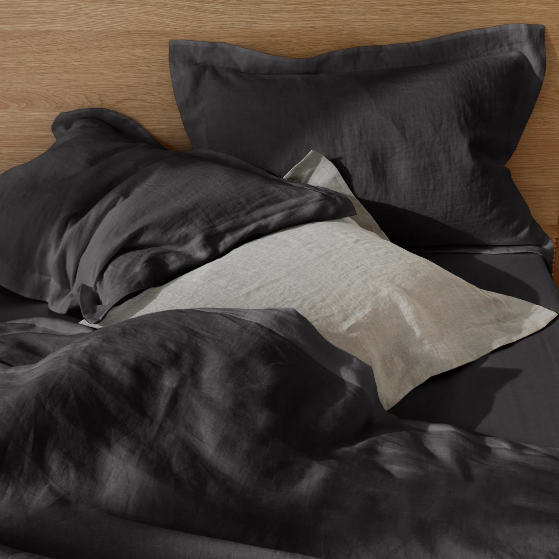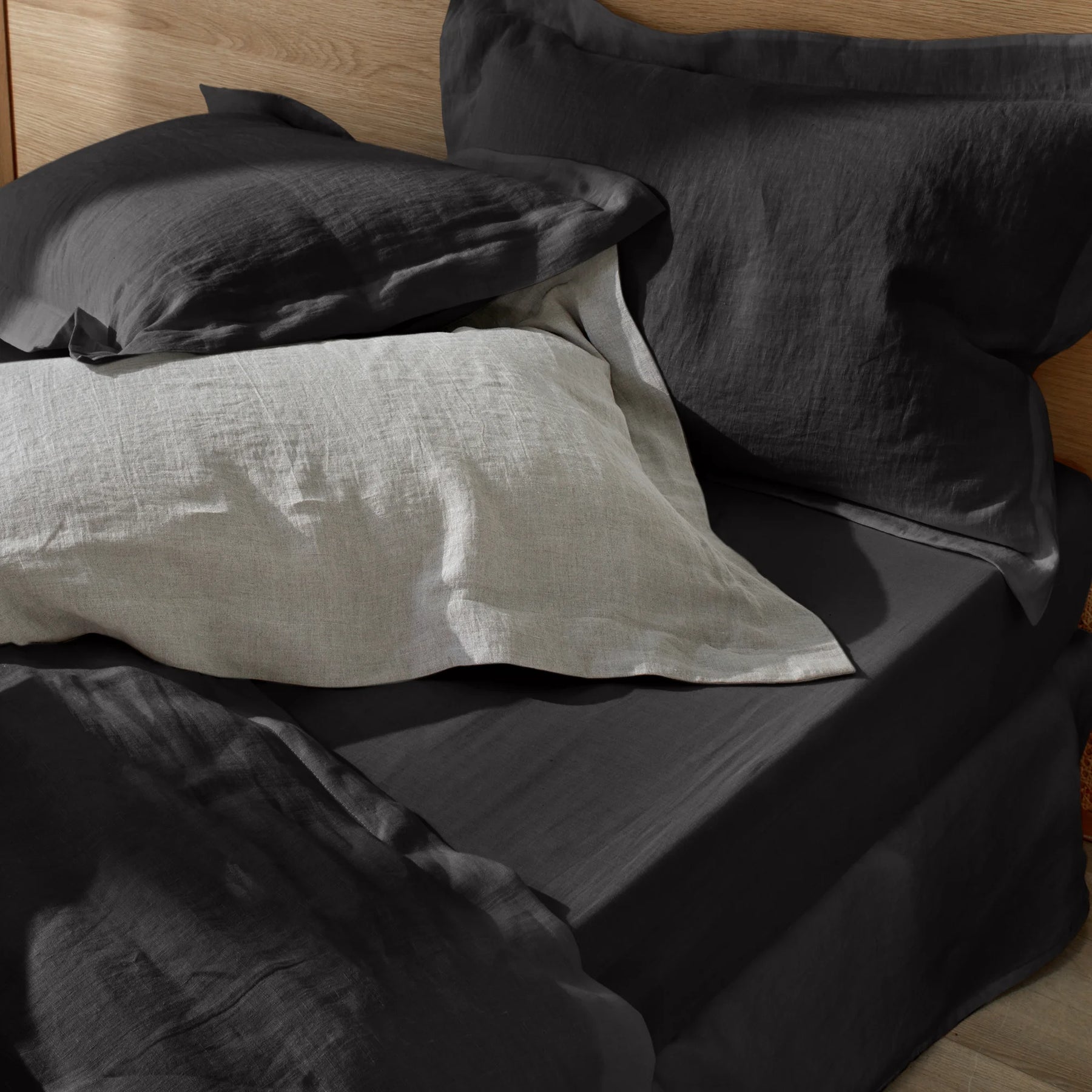 Fronhas em linho com folhos lisos (lote de 2) Preto