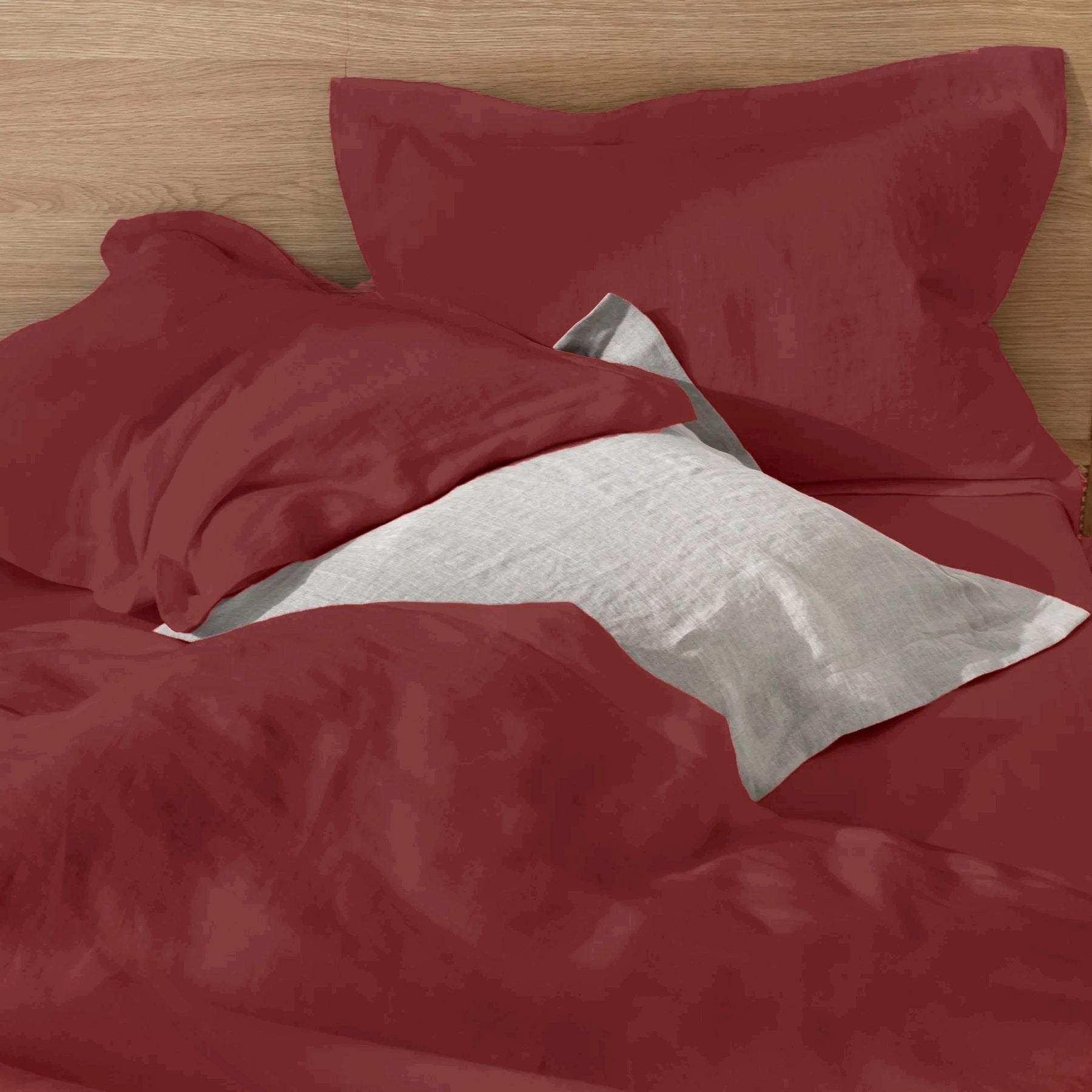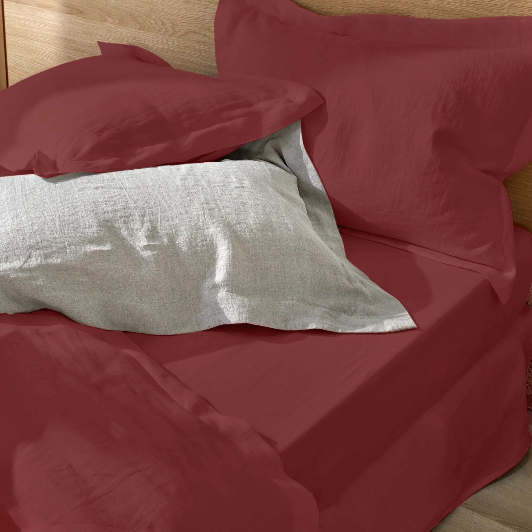 Fronhas em linho com folhos lisos (lote de 2) Tijolo